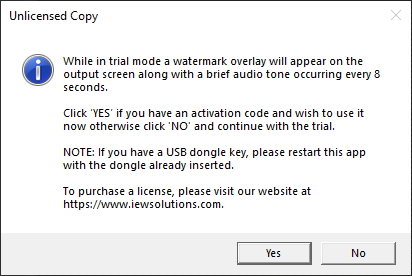Anytime the app is launched and unable to find a valid license key on the system this dialog will appear.