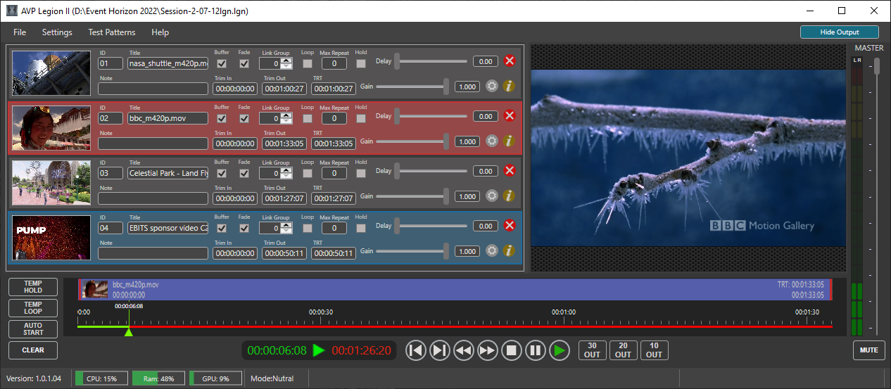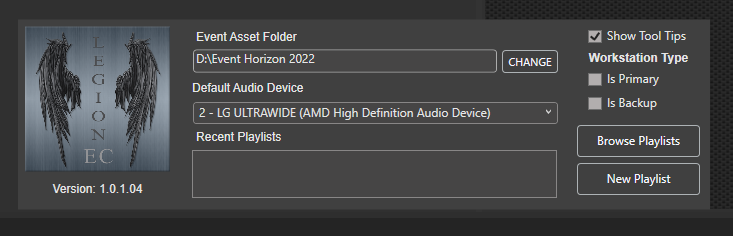 NOTE: It is important to remember that all assets belonging to a playlist must be kept in the event asset folder. This way all elements related to a playlist can be easily moved as one bundle and used on other computers without having to correct the file paths within the playlist.