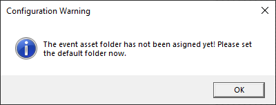 The next prompt to appear is a dialog box asking you to assign the event asset folder.