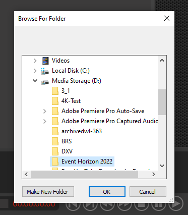 Just so you know, the folder you choose is where all files, including playlist files, are going to be saved. Even if you retrieve assets from other locations, anytime you add a file to the playlist, that file will automatically be copied and placed into this folder.