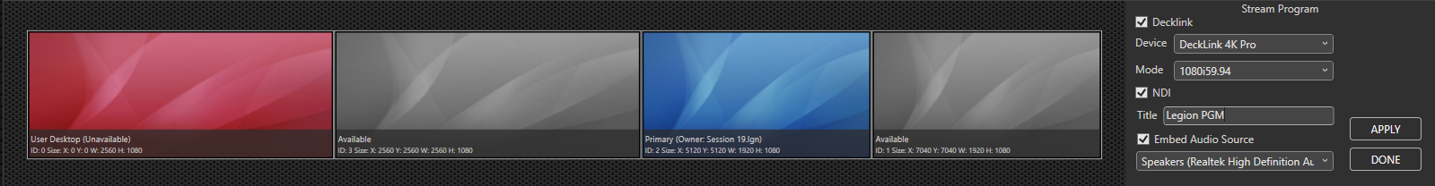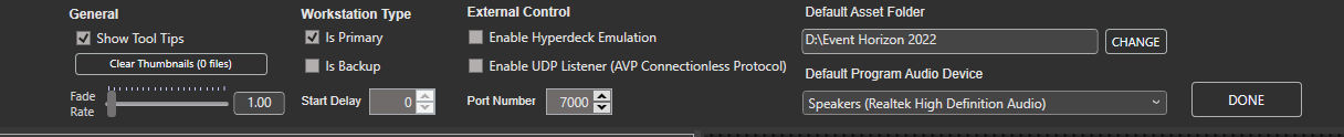 These panels will appear at near the top of the main window. When either of these two panels are displayed, both the program monitoring and playlist data area will shrink in height to make room. Conversely, when they are hidden the monitoring and playlist areas will return to their previous sizes.