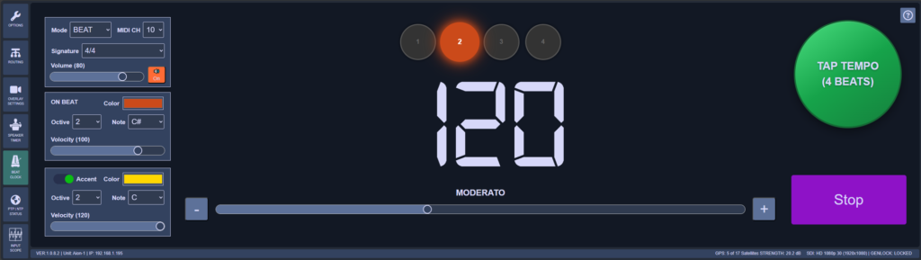 DUAL-MODE MIDI TRANSMISSION Choose BEAT mode for individual note triggers on each beat, or CLOCK mode for standard 24-pulse-per-quarter-note MIDI sync. Drive drum machines, synthesizers, samplers, and DAWs with professional-grade timing that never drifts.