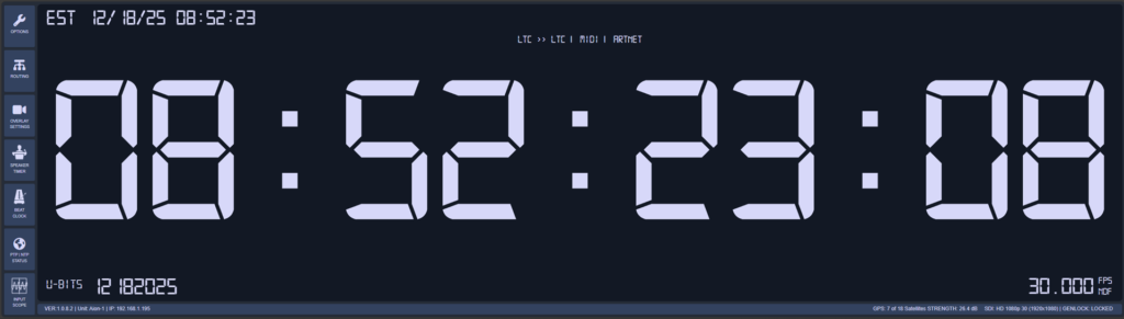 GPS-DISCIPLINED SOURCE ACCURACY When running internal timecode generator as your source, GPS disciplining ensures atomic-grade stability. Nanosecond-level accuracy means your three independent outputs stay frame-locked not just to each other, but to universal time itself. Long-term shoots, multi-day events, or 24/7 facilities maintain perfect sync without drift.